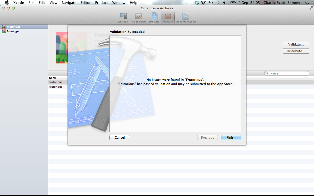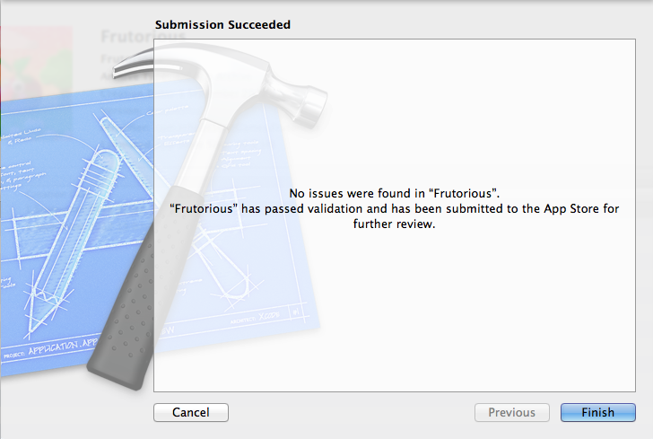 … and last night, Charlie pressed our button that sends Frutorious onto the journey to the AppStore.